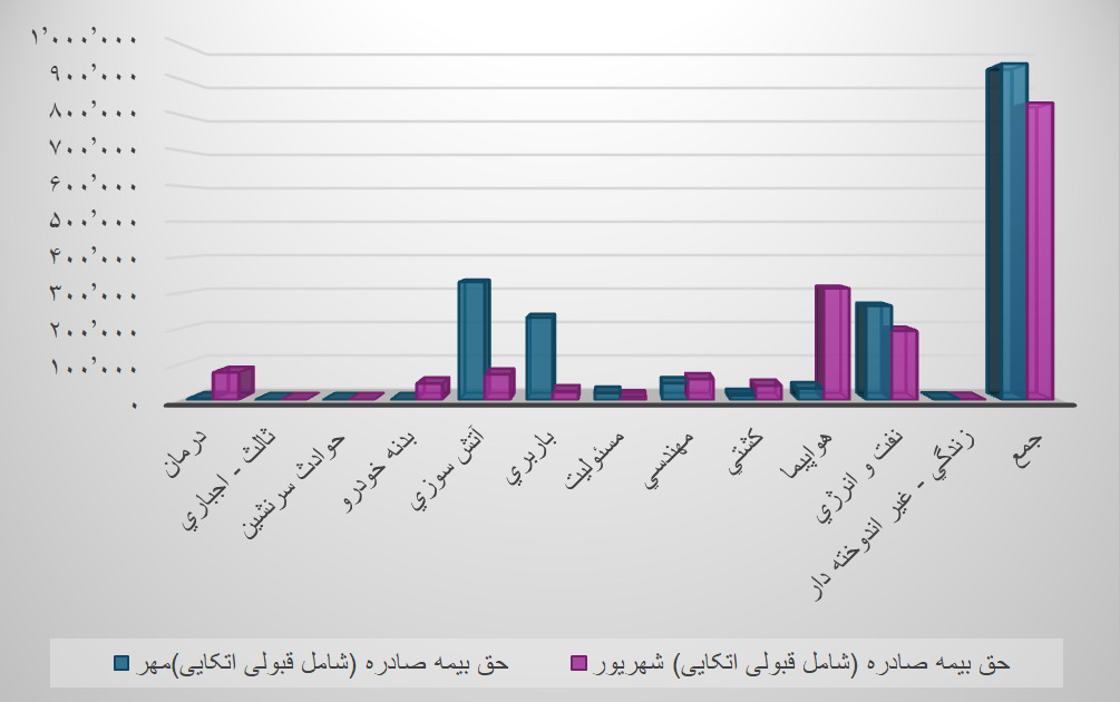 نمودار 1: مقایسه حق بیمه صادره اتکایی در مهر ماه 1404 و شهریور